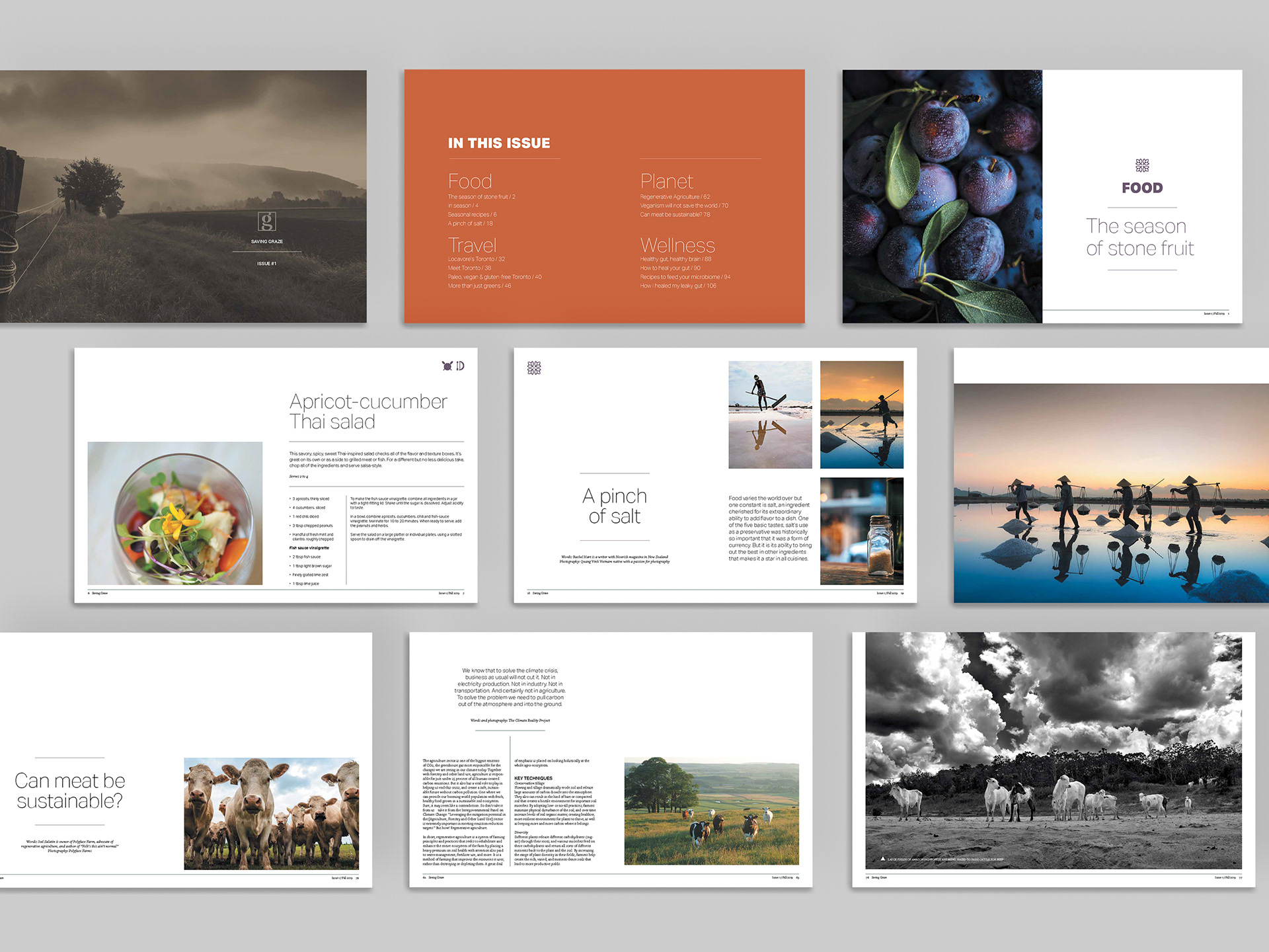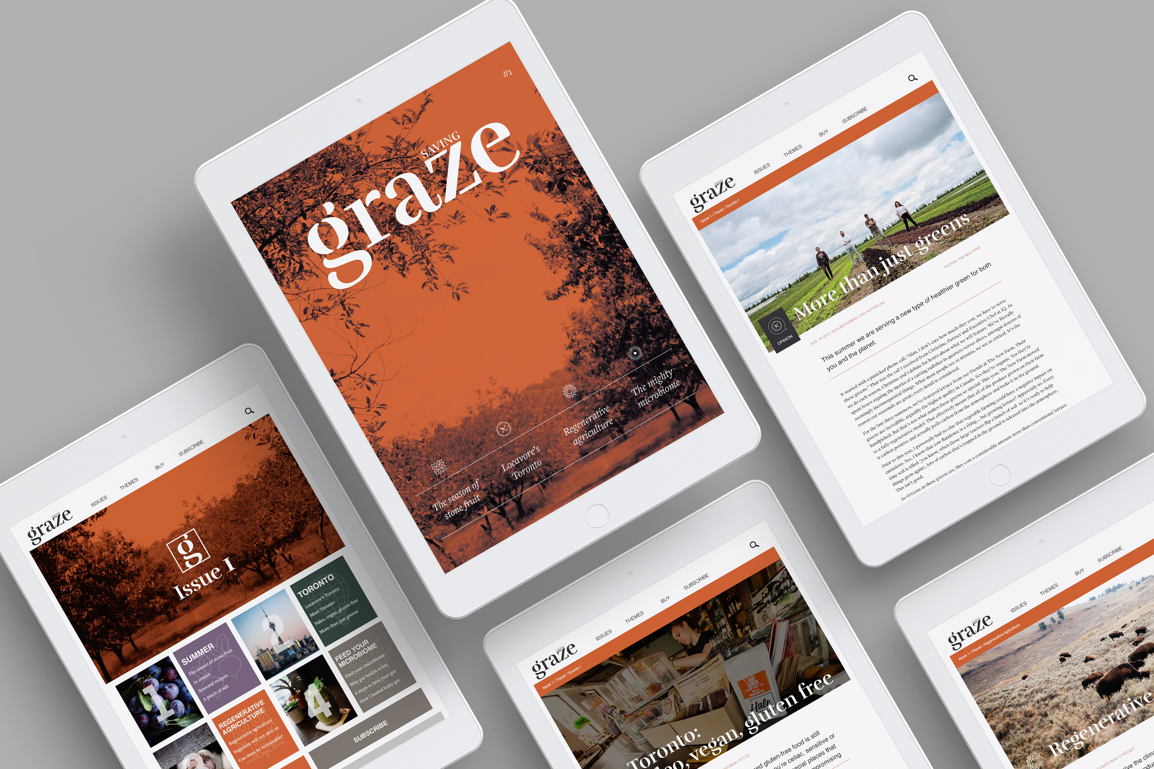 Independent print and digital magazine on regeneration, sustainability and health. Featuring a clean design, earthy tones and arresting photographs, Graze caters to a global audience wishing to tred lightly on the Earth. (2019)